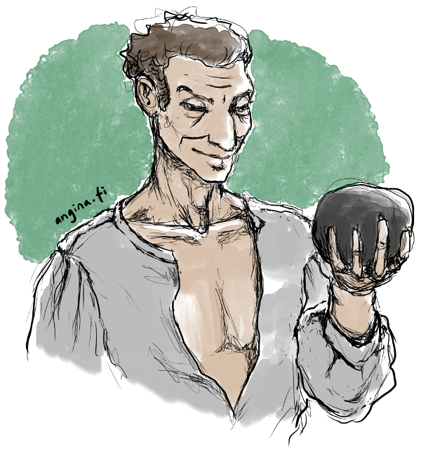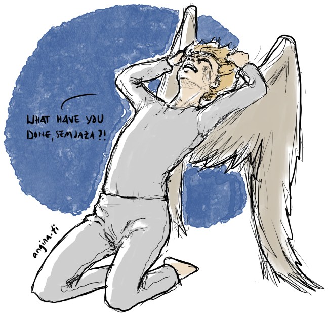 Semjaza holding a pretty black rock. Looking for a Christmas present? Buy a print version of On the Side of the Nephilim!